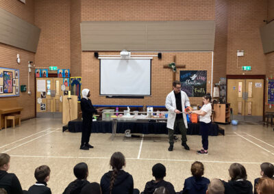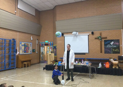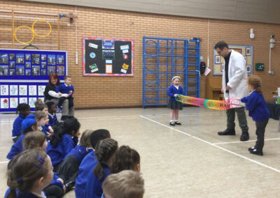 Pupils explored a range of hands-on scientific activities, including chemical reactions, rocket demonstrations, sound vibration investigations, floating and sinking experiments, and the creation of fog rings. These experiences encouraged children to ask thoughtful questions, develop hypotheses, and deepen their understanding of scientific concepts.