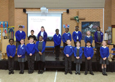 The children also sang hymns beautifully, filling the hall with a sense of hope and joy. Their hard work and dedication were clear to see, and we are incredibly proud of the way they shared this important story with the school community.